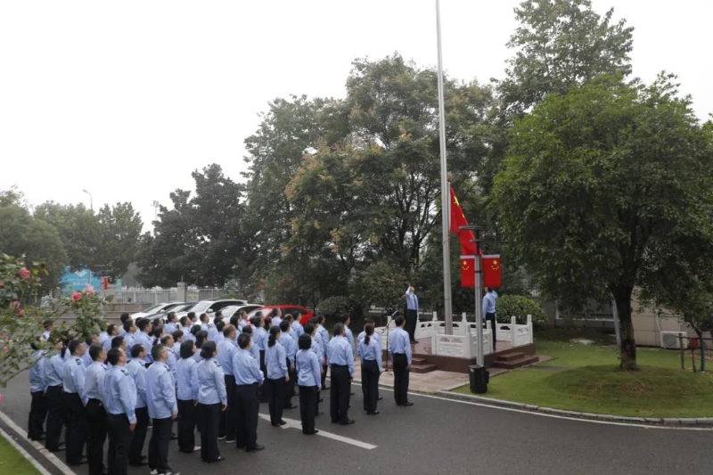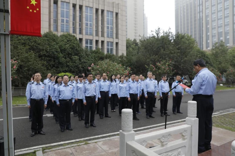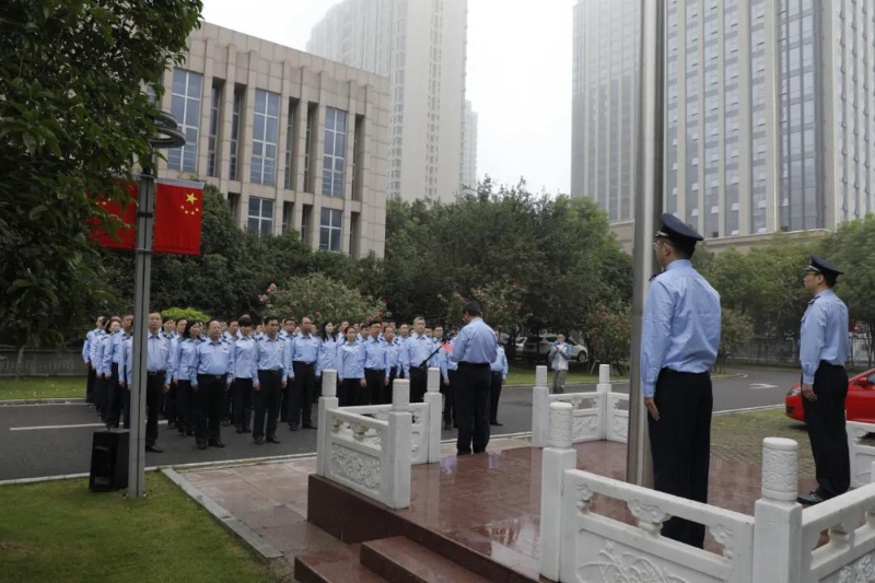 9时整,升旗仪式正式开始。蒙蒙细雨中,参加仪式的市局领导班子成员,市局各单位主要负责人,各区局领导班子成员整齐列队,庄严肃立,伴随着雄壮激昂的《义勇军进行曲》,面向冉冉升起的五星红旗行注目礼,表达对伟大祖国的无限忠诚和热爱。